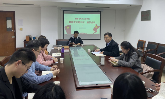 宗妍梳理了党支部开展组织生活、党员发展、党费收缴以及学习强国平台学习使用要求等内容,给各支部进行讲解。顾瑜婷指出各支部除完成规定工作外,还要做好自选工作,加强党建对业务工作的引领,结合党支部建设“提质增效”三年行动计划,开展有特色、有亮点的工作,如师生党支部结对共建,在提升支部工作水平的同时做好学生培养;开展与物理实验相关的志愿服务,打造学院党建活动品牌;落实“三全育人”综合改革,以正确方向提升育人高度,在课程思政、科研育人等工作上下功夫,把立德树人根本任务落到实处。