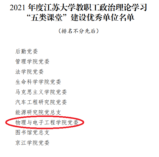 近日,校党委宣传部公布了2021年度色情网址大全 教职工政治理论学习“五类课堂”建设评比结果,色情网址大全 党委获评优秀单位。