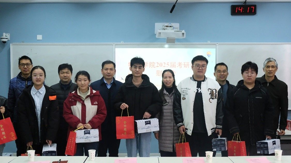会上,潘金彪代表学院党政向全体考研学子送上美好的祝福,并勉励同学们在最后的冲刺期内要坚定必胜信心、保持良好心态、做好复习规划、细心查漏补缺,以健康的心态、强健的身体迎接即将到来的研究生考试。徐晶结合多年考研指导经验提醒同学们要锚定目标不放弃,明白坚持的价值,坚信付出终会有回报。陆正兴与考研学子亲切交流,结合多年的任教经验,陆老师向考研学子们传授了专业复习经验和考试前心理调适的方法。