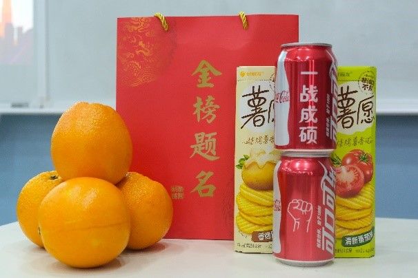 学院为每位考研学子精心准备了“加油礼包”,包含署名定制的祝福可乐,象征心想事成的橙子、愿望成真的薯片,寓意健康的特仑苏牛奶,饱含着对考研学子的深深祝福。