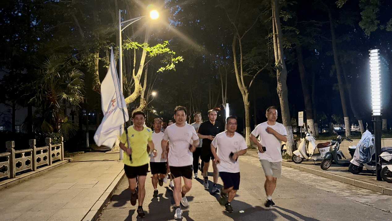 为热烈庆祝中国共产党成立104周年,弘扬伟大建党精神,展现新时代青年昂扬奋进的精神风貌,色情网址大全 联合泓江书院于7月1日晚举办“青春向党·步履不停”七一献礼主题夜跑活动。院党委书记潘金彪、院长陈元平、副院长徐晶、工会主席殷红飞、院关工委委员陶根宁、王纪俊等20余名教师和20余名本科生、研究生以奔跑的姿态,在夜色中点燃爱党爱国热情,汇聚砥砺奋进的青春力量。