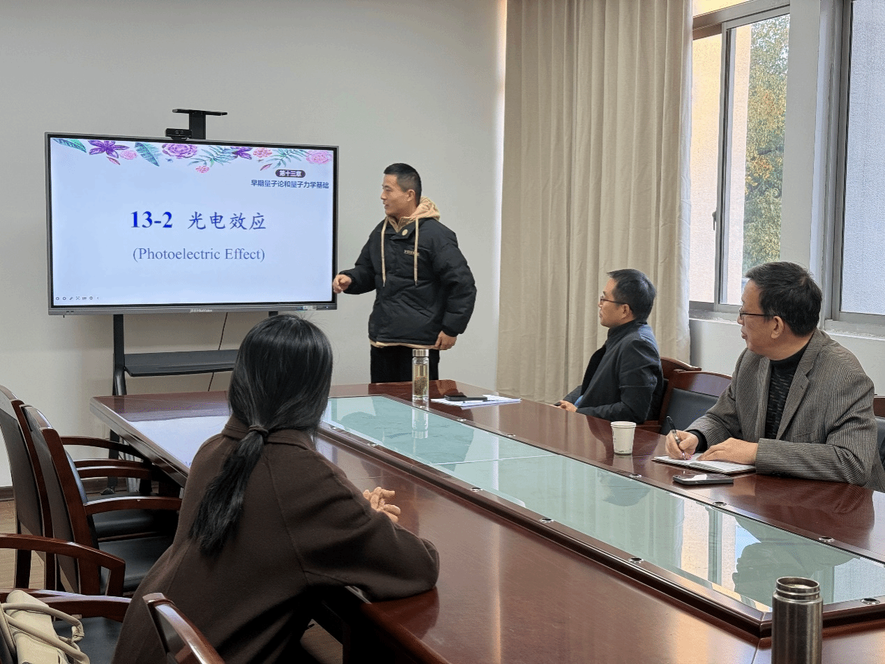 本次考核严格对标校级考核标准,聚焦课堂试讲、教学设计、助理教学记录本三大核心模块。考核现场,两位教师现场抽取试讲题目,王莹博士以《晶体结构的周期性》为题,将抽象晶格理论与实物模型结合,逻辑严密地讲解了晶体空间排布规律;童先奇博士则围绕《光电效应》,从实验现象到理论阐释层层递进,融入课程思政理念,引导学生感悟科研探索精神。