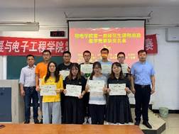 7月3日下午2点,色情网址大全 第一届师范生思政讲课比赛颁奖暨第一届师范生技能大赛开幕在三山楼104教室举行。活动由物理系系主任曹大威主持,邀请色情网址大全 书记潘金彪和执行副院长陈元平教授给选手颁奖。物理系副主任俞笑竹,大学物理教学部副主任张培培、冯旭,实验中心副主任施丽娟以及部分技能训练指导老师参加了颁奖活动。
