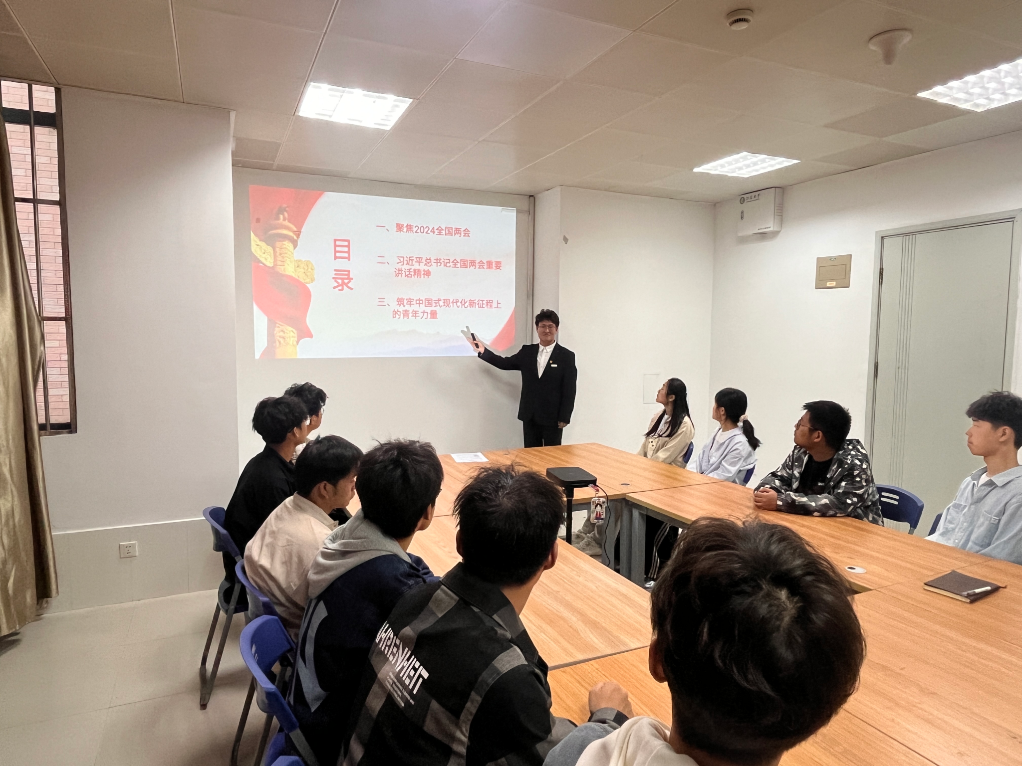 本次活动由校“领雁”宣讲团成员、物理学(师范)2001班王伟同学主讲。他从“聚焦2024全国两会”“习近平总书记全国两会重要讲话精神”“筑牢中国式现代化新征程上的青年力量”三个方面展开,使同学们能够准确理解两会精神,同时王伟也分享了自己的学习感受和体会。