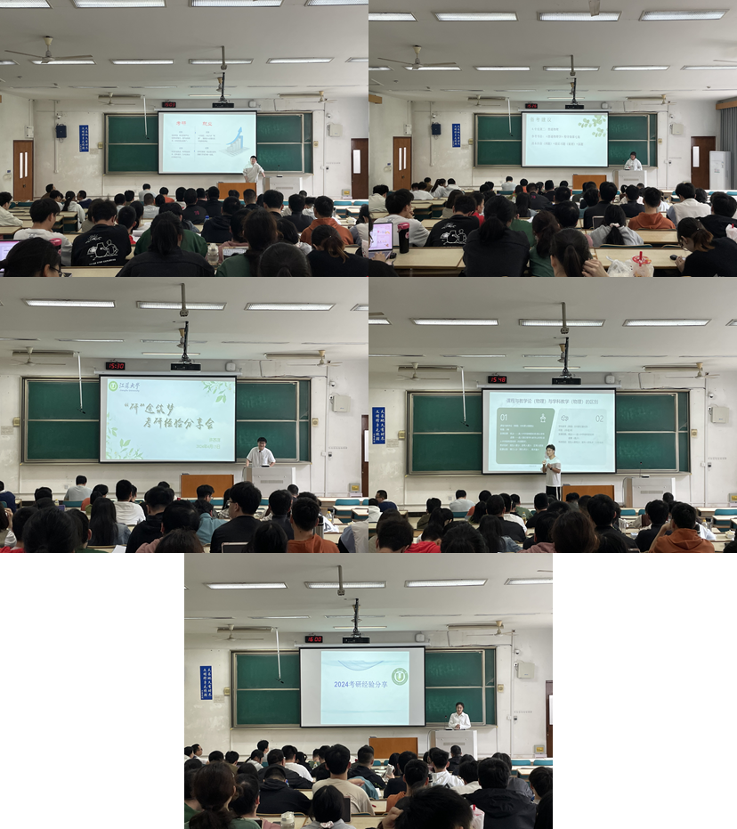 接着,20级5位优秀学生胡骏、孟悦、许苏洋、王伟、周星雨依次分享了自己的考研经历与求职经历,建议学弟学妹们:第一,明确自己的学习目标,有针对性地进行备考;第二,制定合理的学习计划,科学安排时间,确保每分每秒都能有效利用;第三,注重学习方法,提高效率,避免盲目努力。同时,也提醒同学们要保持积极的心态、良好的作息和饮食习惯,确保身心健康,为考研之路提供坚实的后盾。