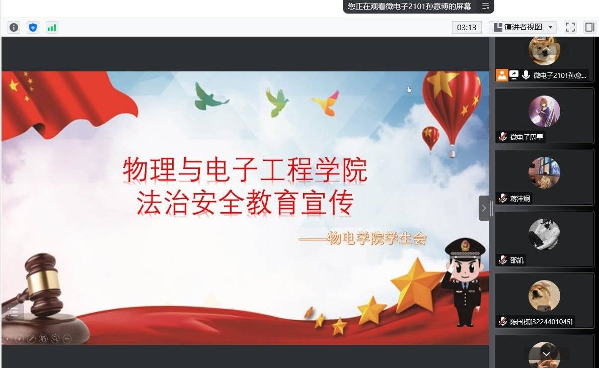 本次活动围绕对宪法的解读认识展开。首先,孙意博利用小短片重点介绍了宪法的发展历程。而后,孙意博通过提问的方式,考察同学对于宪法相关知识的了解程度,加深了同学们对法治安全知识的了解。最后,孙意博强调了宪法的基本精神和主要特征,介绍了宪法的主要内容、作用和意义,加深了同学们对宪法的深层理解。