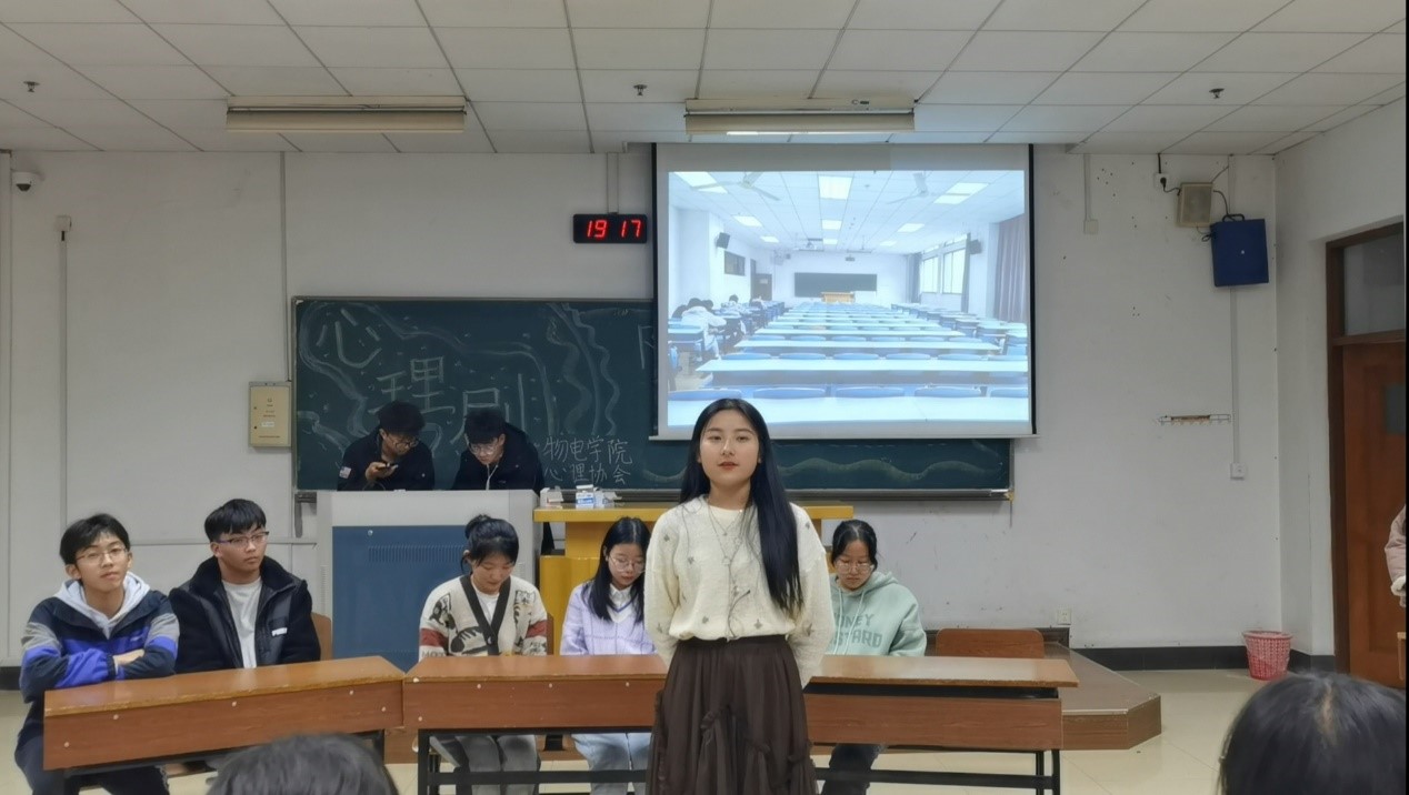 首先,参加活动的同学到指定教室集合并完成签到。然后,主持人宣布活动开始,负责人组织各班心理剧有序上演。表演过程中,同学们互相配合、团结一致,在属于自己的舞台上放飞自我、激昂青春,尽情展现自己多彩的一面。最后,主持人权衡评委给出的分数后宣布获奖情况。