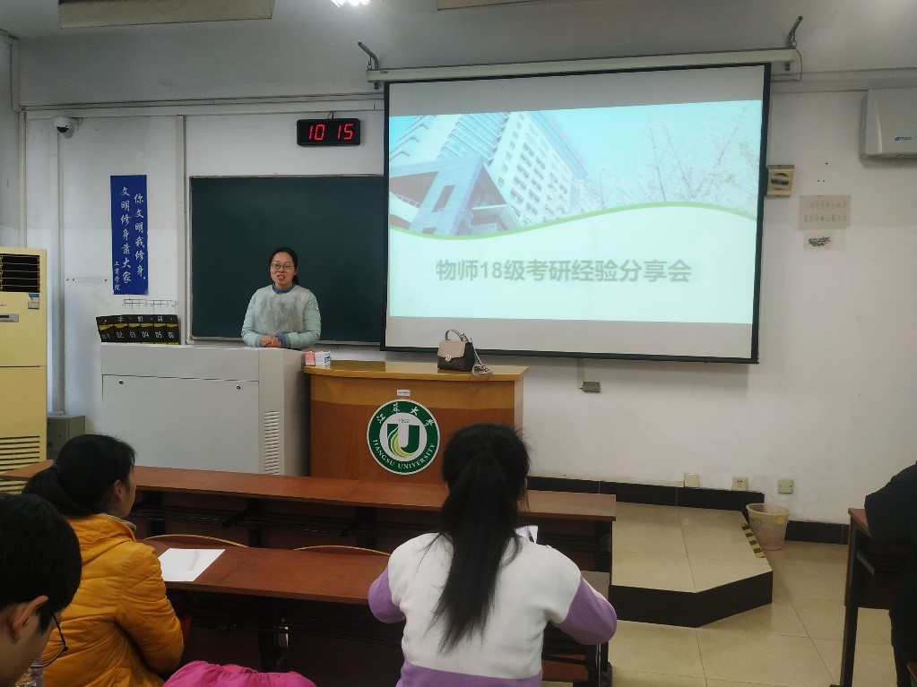 12月4日,色情网址大全 在三山楼110举办18级考研经验分享会。学院副院长孙宏祥、物理师范1801学业导师葛勇、物理师范1802学业导师张培培、20级电子科学技术研究生沈雪敏、20级物理学研究生李杨及全体18级学生参与本次活动。分享会由张培培主持。