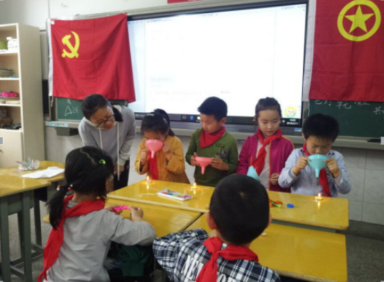 气氛一经活跃,活动便正式开始,饮水鸟、漏斗吹蜡烛、大小气球和无胶粘报纸等小魔术,展示了生活中有趣的物理现象。接着又有机械小车的展示,又使小朋友们感受到科技的力量,拓宽了大家的视野。通过这些生活中有趣的物理现象和实验激发了小朋友们的好奇心以及对生活中物理想象的探索欲,有助于引导他们在生活中发现物理的奥妙。引人入胜小实验展示过后到了科普知识竞答环节,这一环节培养了大家动脑思考的能力。通过有奖问答的方式在向学生们科普生活科技知识的同时引导他们对于科学的学习兴趣。很快活动临近尾声,志愿者、老师和小朋友们合影留念,在一片欢声笑语中结束了本次活动。