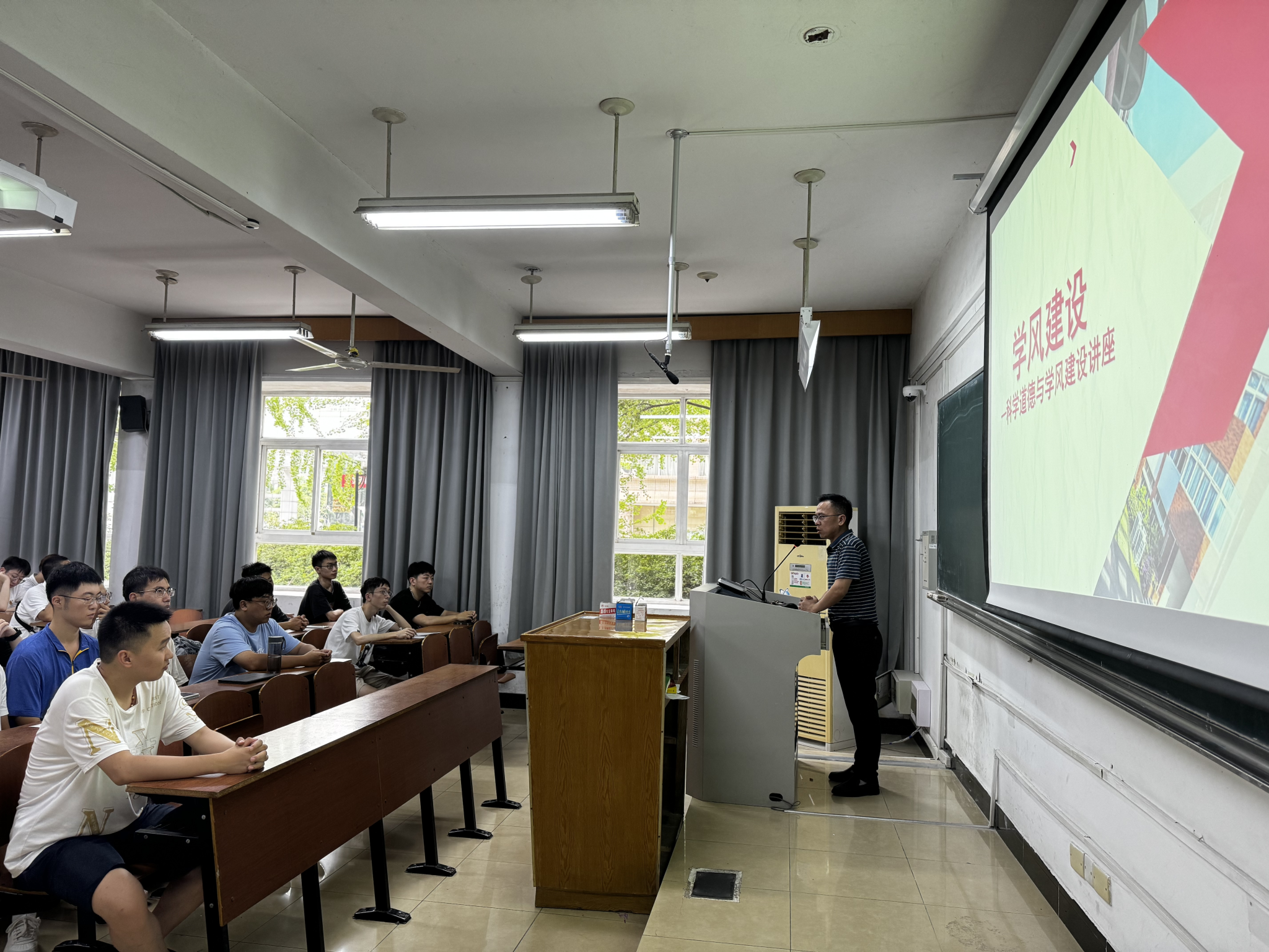 陈院长指出,将科学道德和学风教育纳入研究生培养的各个环节,加强在读研究生学术道德教育,是当前研究生教育面临的一项重要任务。陈院长通过讲述一系列学术道德失范案例,向同学们表明违反学术道德将会引发的严重后果,希望同学们以此为鉴,在未来的学习生活中能够培养追求真理、科学严谨的治学态度,养成诚实守信的行为习惯,坚守学术道德的底线,以严谨的态度和诚实的作风投身于科研学术工作之中。