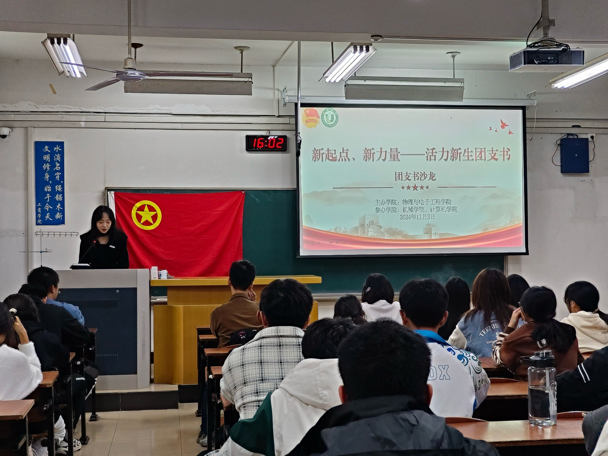 为提高各团支书思想政治觉悟,进一步提升基层团组织建设能力和社会实践活动业务水平,色情网址大全 联合机械工程学院、计算机学院于2024年11月3日下午16:00在三山楼107室举办“新起点、新力量--活力新生团支书”团支书沙龙活动。活动邀请机械学院测控2201团支部团支书袁鑫、计算机学院计算机2101团支部团支书杨宇轩、色情网址大全 物师2201团支部团支书张家宁担任本次团支书沙龙嘉宾,各学院团支书及组织委员、宣传委员参与沙龙共64人。