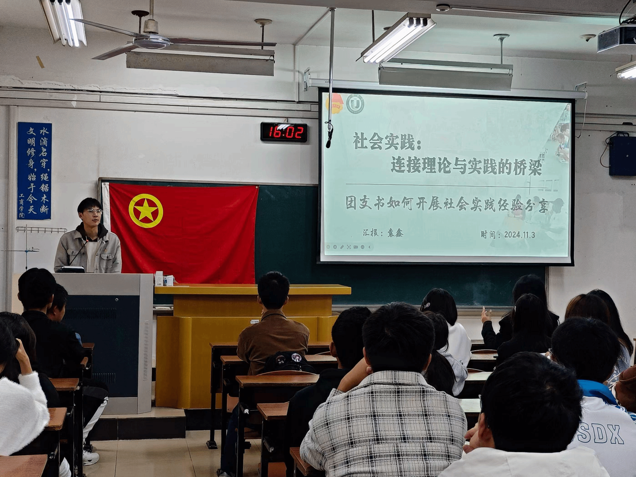活动伊始,机械学院测控2201团支部团支书袁鑫从“什么是社会实践活动”、“如何开展社会实践活动”与各位新生团支书展开交流,并讲述了个人实践故事,其中提到“科技+生态+科普”实践活动,强调了团干部分工协作对团组织基层建设的重要性,对新生团支书们未来成为传承者、宣传者、践行者的方向给予很大的启发。