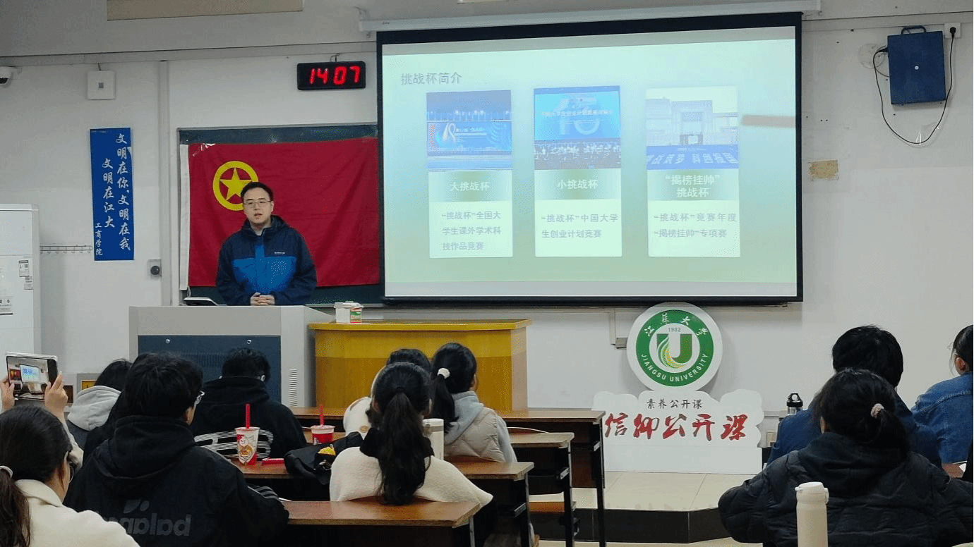 本次活动很荣幸邀请到几位优秀的学长,他们分别向同学们分享竞赛的详细流程,他们在过程中的体验、感触,并且向同学们讲述了他们在挑战杯竞赛中总结的宝贵经验,比如如何在前期进行备赛,怎么与老师沟通联系,遇到了什么样的困难最后又如何克服。通过学长们真情实意的讲述与毫无保留的分享,同学们深刻地了解到了竞赛的流程、重要事项以及相关的预备条件。在精致的幻灯片演示和生动的演讲下,相信在座的同学们对于“挑战杯”竞赛一定也有了更深的认识和感触。