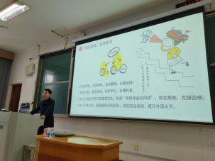 顾老师首先分析了近几年来师范生面临的严峻就业形势,提出了“双提升工程”,即提高学历和提高能力。接着,结合具体案例,从坚定目标-合作学习、积极参与-团队竞赛、课堂观摩-反思创新、试题研究-发散思维、阅读反思-铺路科研八个方面就如何提高师范生能力展开了详细的介绍。最后,以“星光不负追梦人,成功眷顾奋进者!”送给师范生,鼓励大家不仅要有梦想追求,更要有目标和规划。顾老师幽默风趣、报告精彩生动。学生们纷纷表示要积极进取,抓住机会提升能力,创造属于自己的美好未来!