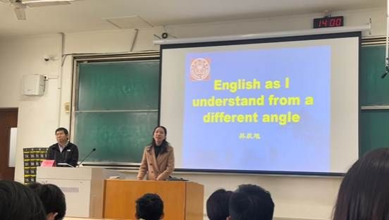 On the afternoon of March 31st, Professor Wu Chenxu, a national distinguished youth scholar and a professor at Xiamen University, was invited to give a special lecture titled "English as I understand from a different angle" to students of our school in Room 201 of the lecture hall. The lecture was hosted by Gu Yuting, the Vice Dean, and was attended by undergraduate students.