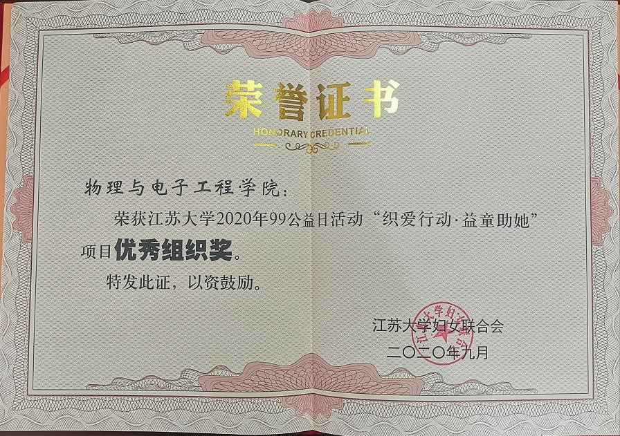 College of Physics and Electronic Engineering Won the Excellent Organization Award of "99 Charity Day"